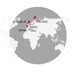 Europe (Dublin, Paris, Finland, Spain), and UK.